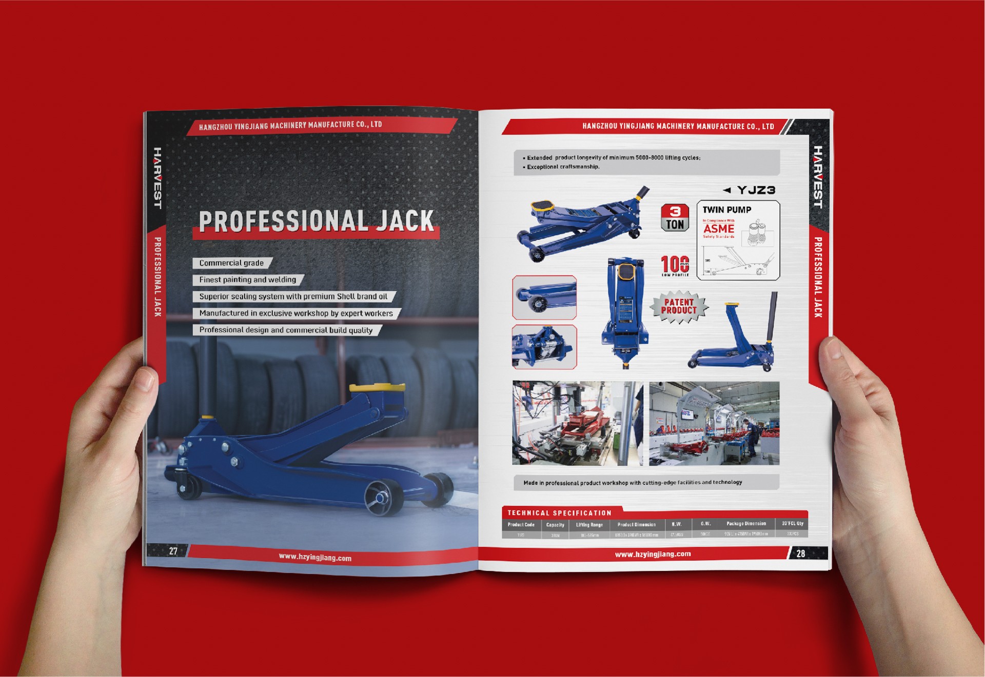 深藍色的封面背景,象征著盈江機械的穩重、專業與高品質。在封面的中央位置,我們看到了產品圖示,各頁頁邊運用紅色和黑色進行點綴,使得手冊更加醒目,引人注目,能夠有效吸引受眾觀看。
