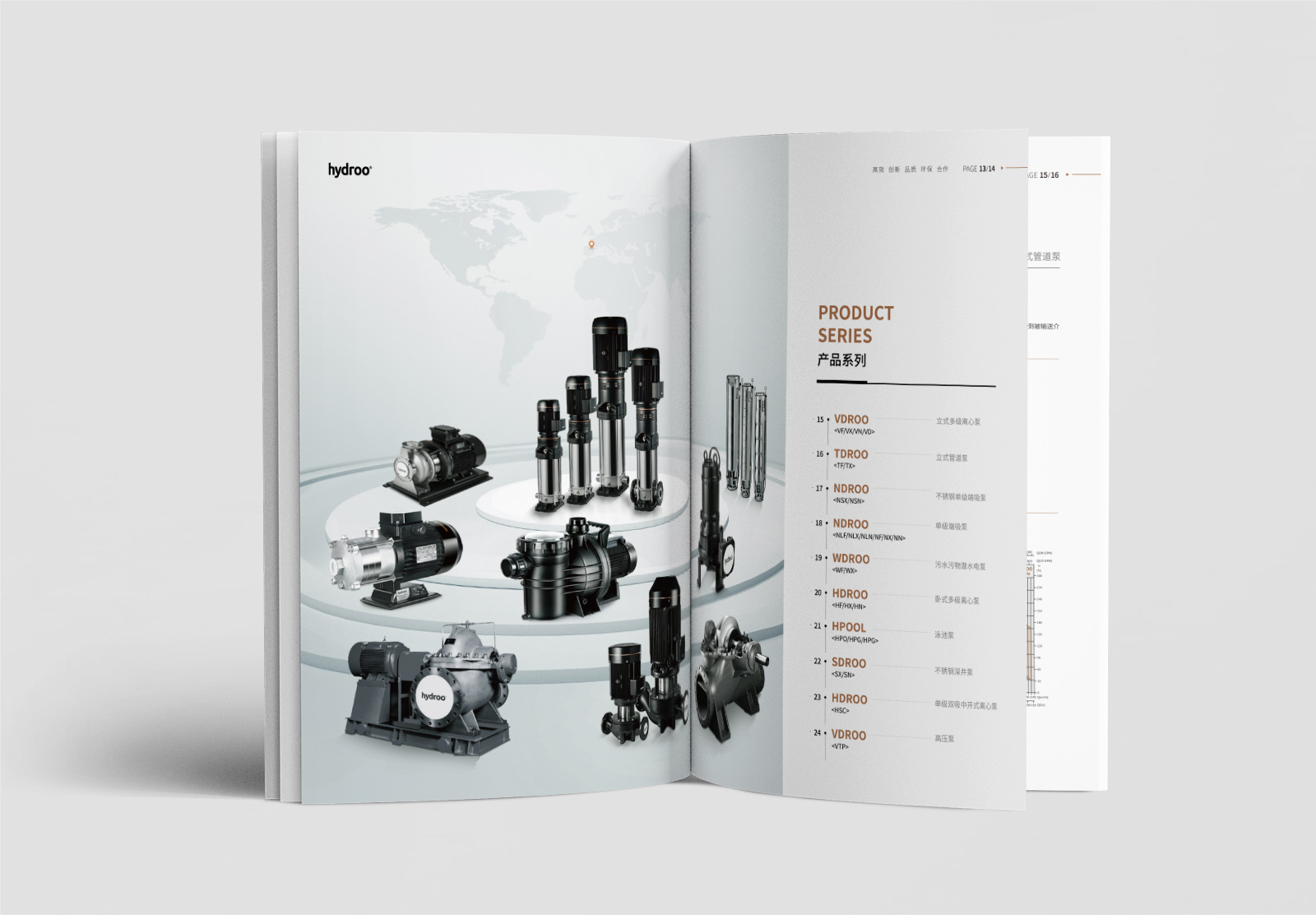 在溝通中,我們了解到浩卓總部位于西班牙巴塞羅那,運營分部設(shè)在中國杭州,為更好的展示浩卓企業(yè)綜合實力,在畫冊的設(shè)計上,以圖文結(jié)合的形式先對企業(yè)的基本情況進行介紹,之后以表格、數(shù)據(jù),細(xì)節(jié)圖對各類產(chǎn)品進行闡述,便于受眾快速了解產(chǎn)品參數(shù)及規(guī)格,最后展示浩卓泵業(yè)的經(jīng)典案例,凸顯企業(yè)突出的業(yè)績。另外,對畫冊的封面做了創(chuàng)意設(shè)計,其主畫面是一個地球,分為上下兩個部分,上部分以線稿的流程圖表現(xiàn)出的一站式解決方案;下部分則是半個地球,體現(xiàn)企業(yè)致力為全球提供各類高端泵產(chǎn)品和泵解決方案。