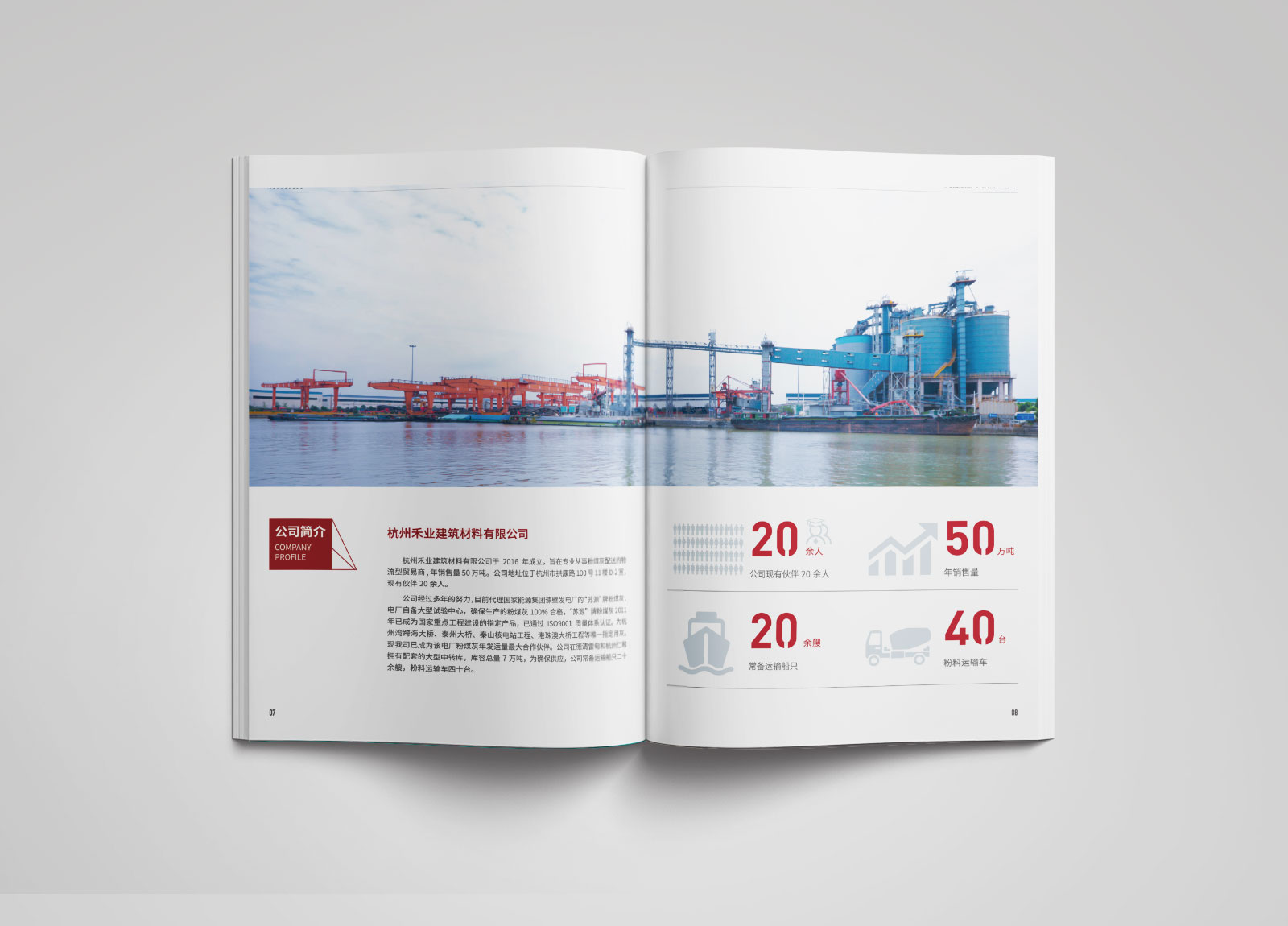 設計師根據企業LOGO的形狀,企業的行業屬性,鏡像畫冊版面設計,畫冊整體風格偏硬朗,畫冊中會根據文案進行小圖標設計,豐富畫面,突出數據。