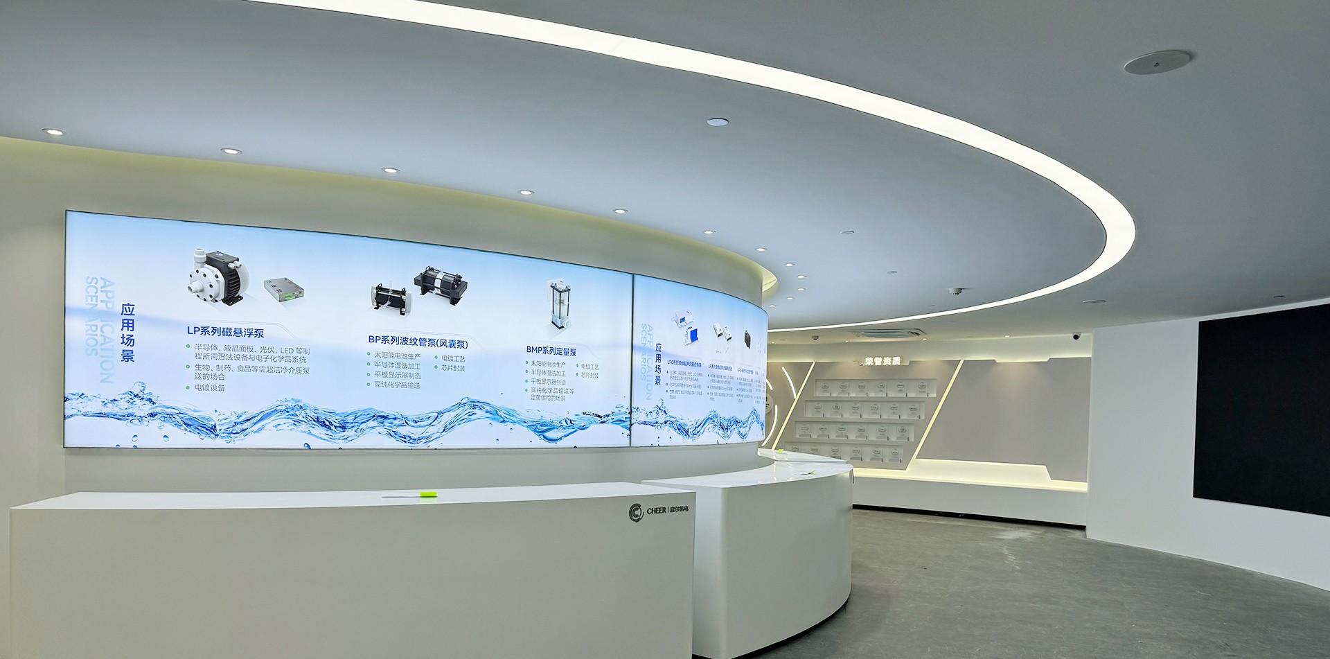 2. 序廳(品牌形象區(qū))設(shè)計(jì)元素:采用高科技感的LED大屏播放公司宣傳片,結(jié)合動(dòng)態(tài)光影效果,營(yíng)造震撼的視覺(jué)效果。墻面設(shè)置企業(yè)形象墻,展示公司歷史沿革、榮譽(yù)獎(jiǎng)項(xiàng)及核心團(tuán)隊(duì)介紹。亮點(diǎn):設(shè)置AR互動(dòng)裝置,參觀者可通過(guò)手機(jī)或特定設(shè)備掃描二維碼,虛擬體驗(yàn)公司發(fā)展歷程中的重要時(shí)刻。