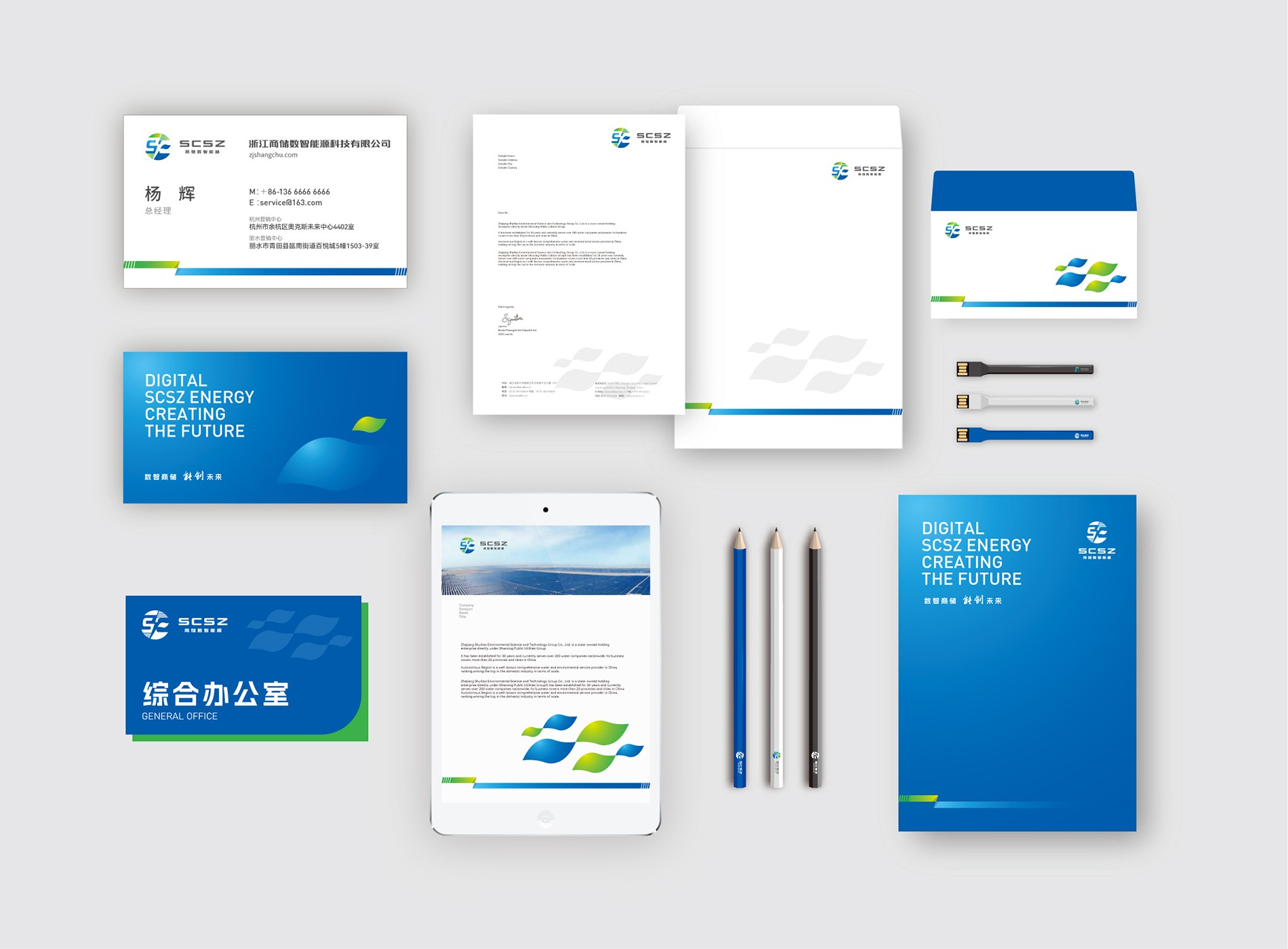 商儲數智能源視覺識別系統,通過嚴格標準化的語言和系統化的視覺符號,將商儲數智能源的服務宗旨、行為和功能傳送給社會公眾,具有突出商儲數智能源服務的功能,起到強化品牌形象的作用。標志釋義:1、以字母 S和負形 C 為主體,結合業務的儲能模塊,形成的圓,代表著我們為之奮斗的事業,整體壁合天成,獨具匠心,向世界展示了作為儲能企業自信的一面--數智商儲,能創未來。 2、筆畫模塊交錯平行,代表我們深耕技術,創新產品,同時也展現了我們縱橫天下,行道載道的胸襟與志向。 3、設計中巧妙運用正形和負形的互換,以及視覺的連貫性,既體現了“閃電”的符號之美,又使圖形結構氣脈疏通,代表了我們開拓創新的意向。 4、中部的靈動的綠葉,一則點明我們的綠色能源屬性,二則蘊含飄揚的旗幟之意,代表著我們將高舉行業旗幟,為用戶提供一流的產品和解決方案,三則如同車窗造型,代表我們的事業是溝通能源事業的窗口。 5、品牌標識整體采用左右對稱的布局,左右均衡平穩,中間略微傾斜,產生動態的前進感,嚴謹容,動靜兼備。色彩源自科技的藍色代表了信守與創新,源自能源的綠色,代表了生命與傳承。