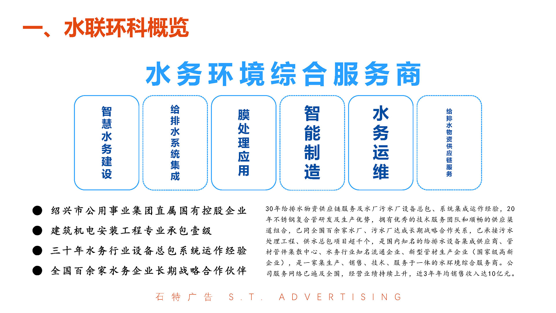 浙江水聯(lián)環(huán)科集團有限公司作為紹興市公用事業(yè)集團直屬的國有控股企業(yè),深耕供排水物資經(jīng)營、不銹鋼復(fù)合管生產(chǎn)及設(shè)備集成總包領(lǐng)域20余年,銷售網(wǎng)絡(luò)覆蓋省內(nèi)外,近3年年均銷售收入達(dá)6.5億元,并獲評浙江省守合同重信用3A級單位、國家高新技術(shù)企業(yè)等榮譽。面對行業(yè)競爭加劇與可持續(xù)發(fā)展需求,石特廣告策劃團隊以“科技賦能水務(wù),綠色驅(qū)動未來”為核心理念,為其量身定制品牌全案升級方案,涵蓋調(diào)研分析、品牌定位、品牌DNA重構(gòu)、廣告語提煉、VI視覺識別系統(tǒng)設(shè)計及宣傳畫冊策劃,助力企業(yè)從傳統(tǒng)制造向科技化、綠色化品牌轉(zhuǎn)型,強化行業(yè)標(biāo)桿地位。