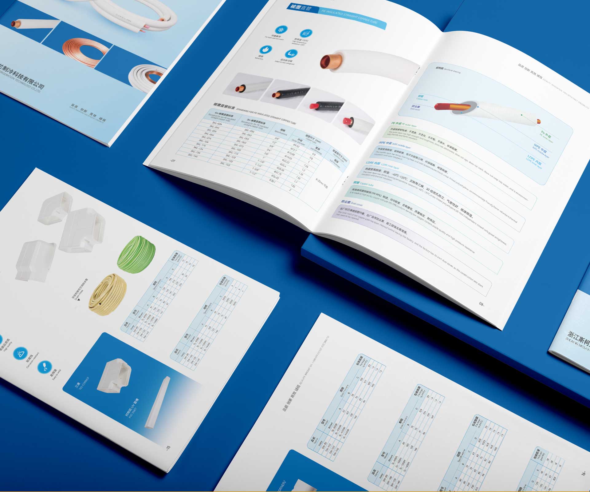 冷色系專業(yè)視覺設(shè)計: 設(shè)計上緊扣行業(yè)屬性,主色調(diào)采用代表制冷、科技與專業(yè)的藍色系及灰色系,營造冷靜、可靠、高效的視覺氛圍。運用清晰的信息圖表、技術(shù)參數(shù)對比表及系統(tǒng)原理示意圖,將復(fù)雜的制冷循環(huán)、能效數(shù)據(jù)等轉(zhuǎn)化為易于理解的視覺語言。