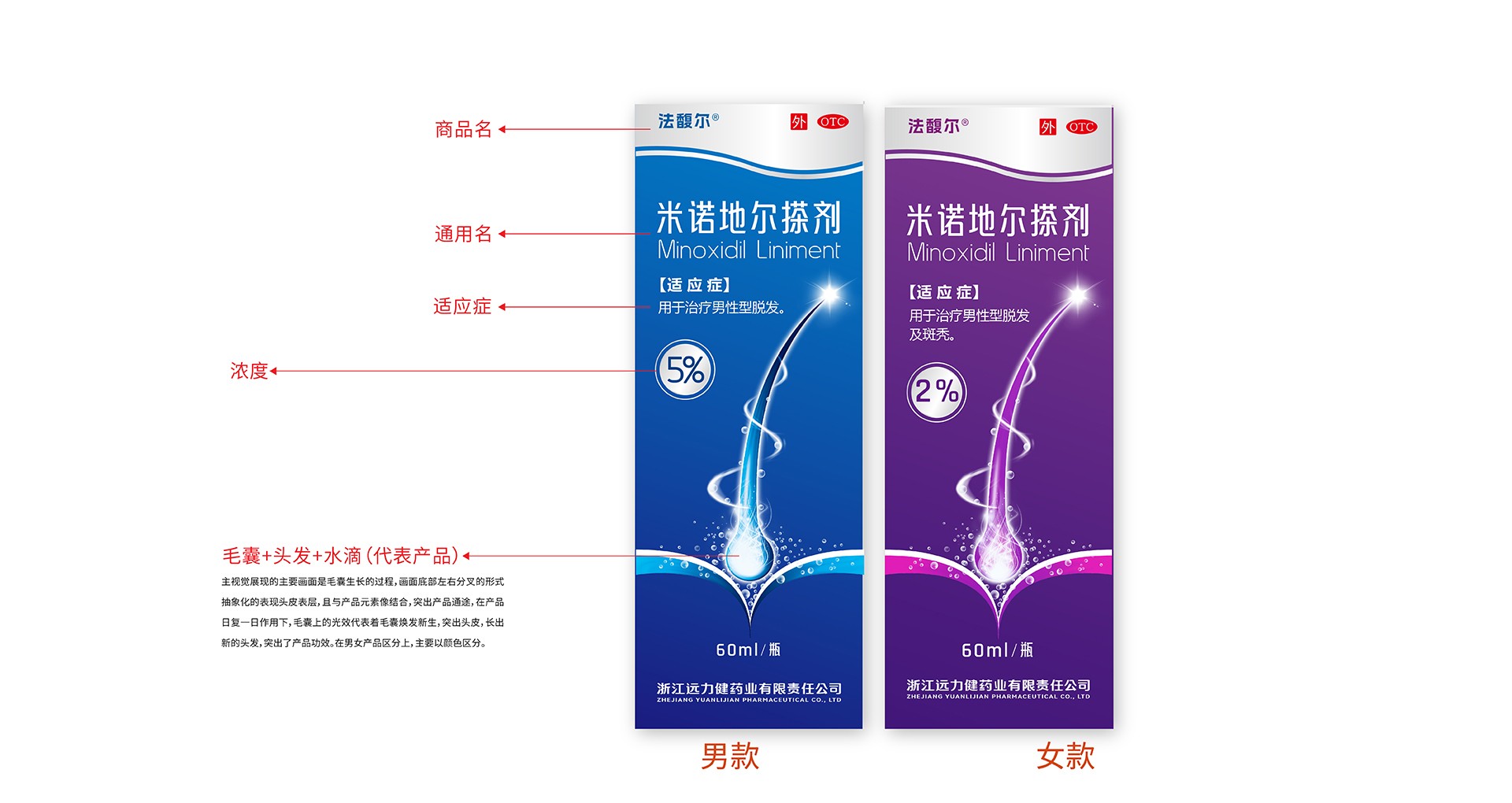 主視覺展現(xiàn)的主要畫面是毛囊生長的過程,畫面底部左右分叉的形式抽象化的表現(xiàn)頭皮表層,且與產(chǎn)品元秦像結(jié)合,突出產(chǎn)品通途,在產(chǎn)品日復(fù)一日作用下,毛囊上的光效代表著毛囊煥發(fā)新生,突出頭皮,長出新的頭發(fā),突出了產(chǎn)品功效。在男女產(chǎn)品區(qū)分上,主要以顏色區(qū)分。
