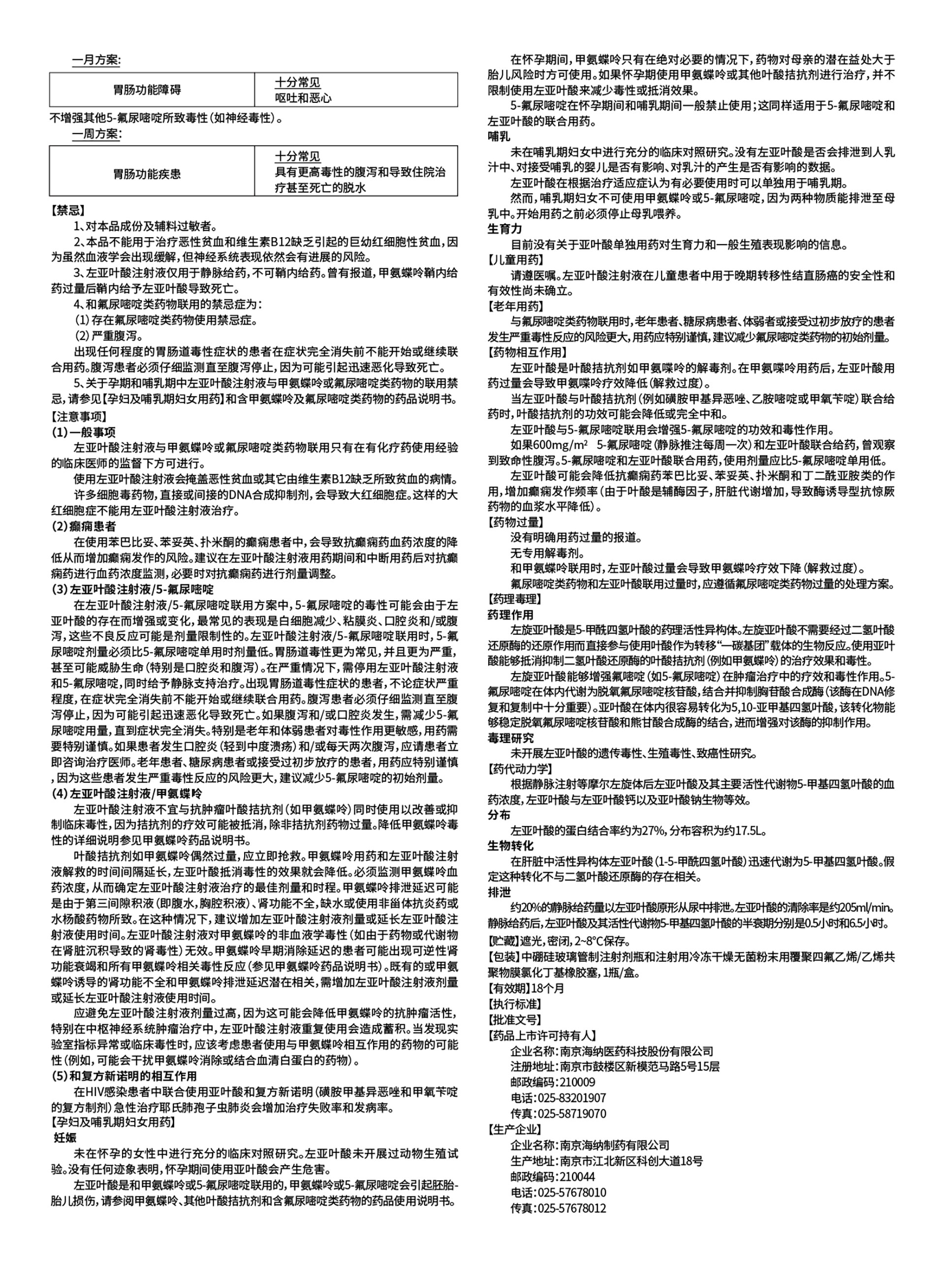 3、與5-氟尿密呢聯用,治療轉移性結直腸癌。使用限制:本品不能用于治療惡性貧血和維生素B,,缺乏引起的巨幼紅細胞性貧血因為雖然血液學會出現緩解,但神經系統表現依然會有進展的風險。