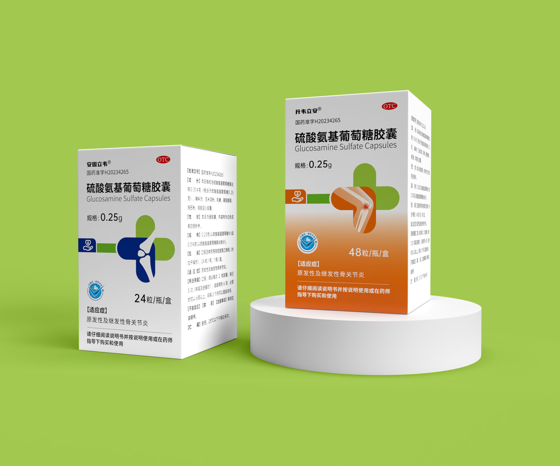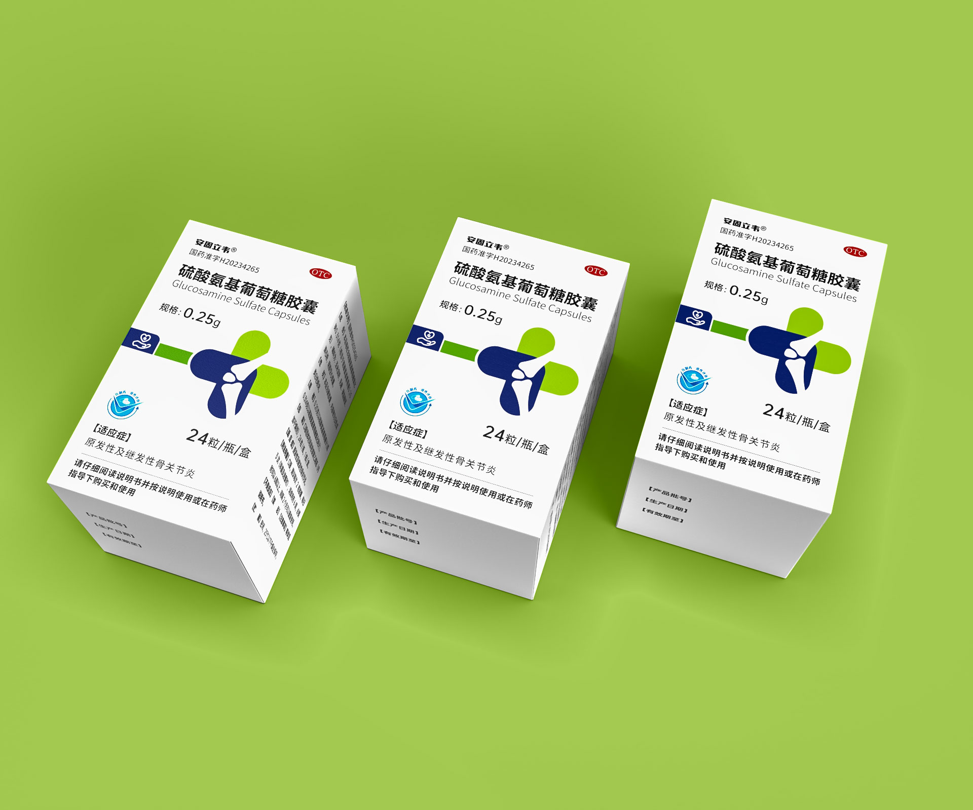 當硫酸氨基葡萄糖膠囊、西洛他唑片等系列產品陳列于藥店時,統(tǒng)一的色彩基因、符號系統(tǒng)形成 **“安星醫(yī)藥專區(qū)”** 視覺沖擊,區(qū)別于競品零散布局,提升品牌貨架辨識度,助力藥師推薦、患者選購。